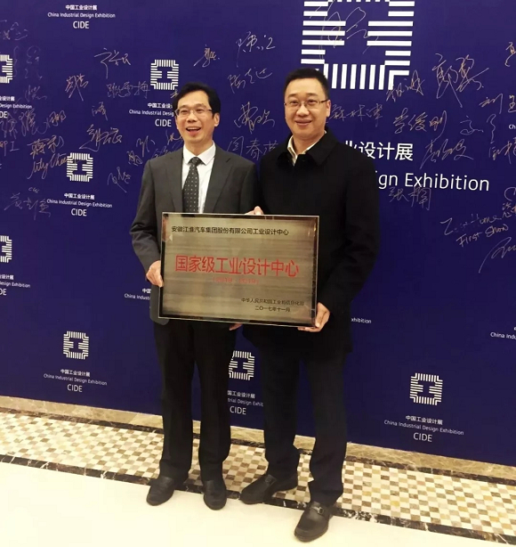 *江淮汽车于2017年再获工信部国家级工业设计中心授牌