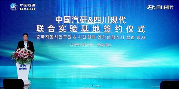 2019年10月29日,中国汽车工程研究院股份有限公司与四川现代汽车有限公司联合设立的“中国汽研&四川现代联合实验基地”签约及揭牌仪式在四川现代资阳工厂隆重举行。