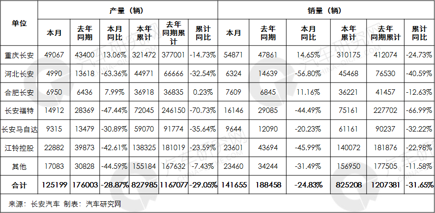 合肥长安6月汽车产量6950辆,同比增长7.99%,销量7609辆,同比增长11.16%。
