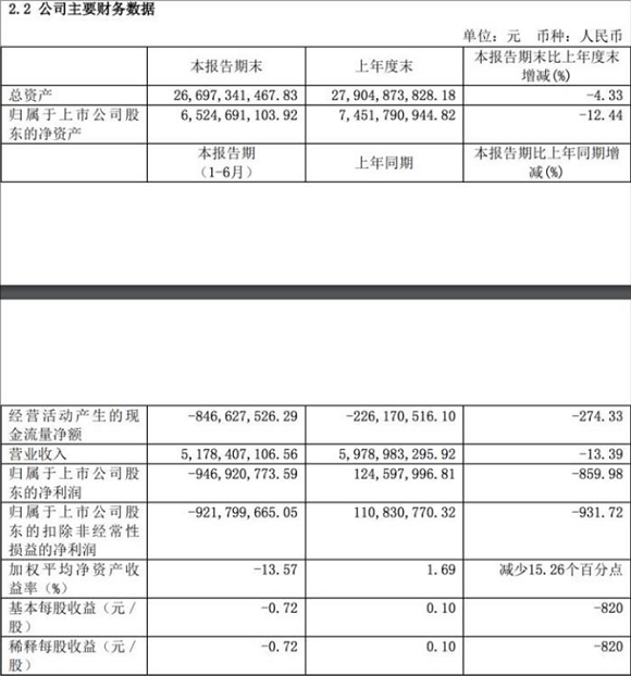 8月22日晚,力帆公布了净亏损超9亿元的半年报,还进行了换将等一系列的人事调整。数据显示,该公司上半年营收51.78亿元,同比下降13.39%;净利润则亏损9.47亿元,上年同期盈利1.25亿元。