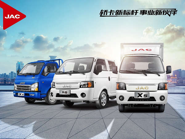 目前,江淮轿卡系列由X5、X6、X7三大主力产品组合而成,提供宽窄体、柴汽油、单双排、可翻转等多样配置可选,轴距覆盖2600mm-3100mm。
