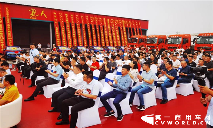 典礼现场,中国重汽豪沃石家庄分公司,潍柴动力石家庄办事处,法士特河北办事处,山东豪沃金融,山重租赁,泰安五岳,青岛重工等相关企业负责人,社会各界人士、媒体朋友近500人共同见证了这场隆重的开业仪式。