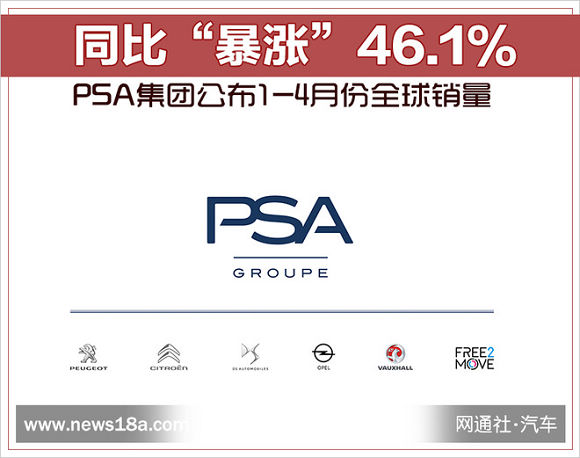 PSA集团公布1-4月份全球销量 同比“暴涨”46.1%