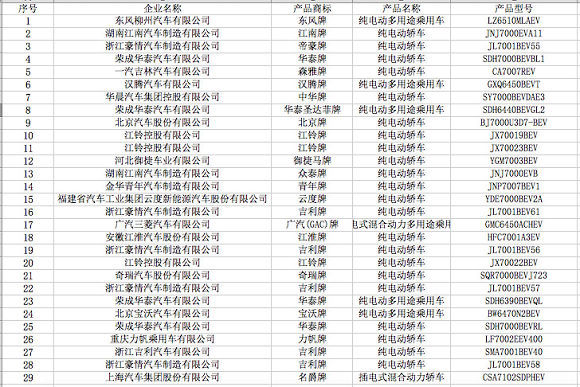 309款新能源汽车产品中包含新能源乘用车29款,新能源客车137款,新能源专用车143款。