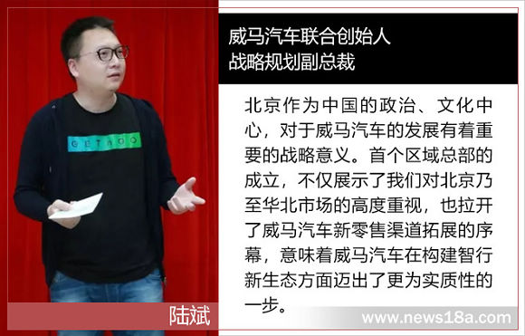 陆斌表示:“北京作为中国的政_治、文化中心,对于威马汽车的发展有着重要的战略意义。首个区域总部的成立,不仅展示了我们对北京乃至华北市场的高度重视,也拉开了威马汽车新零售渠道拓展的序幕,意味着威马汽车在构建智行新生态方面迈出了更为实质性的一步。同时,我们位于王府井东方新天地的Space威马汽车城市展厅将很快和大家见面。”