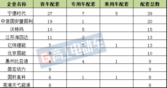 而从配套电池供应商来看,根据高工电动车网统计,本批新产品公告中,依旧是宁德时代配套车型的数量最多,达到39款;而配套车型数量排名第二和第三的企业分别是中信国安盟固利和沃特玛,配套车型数量分别是20款和15款。