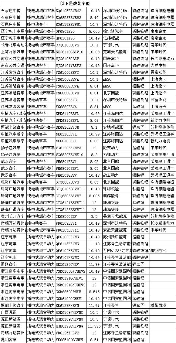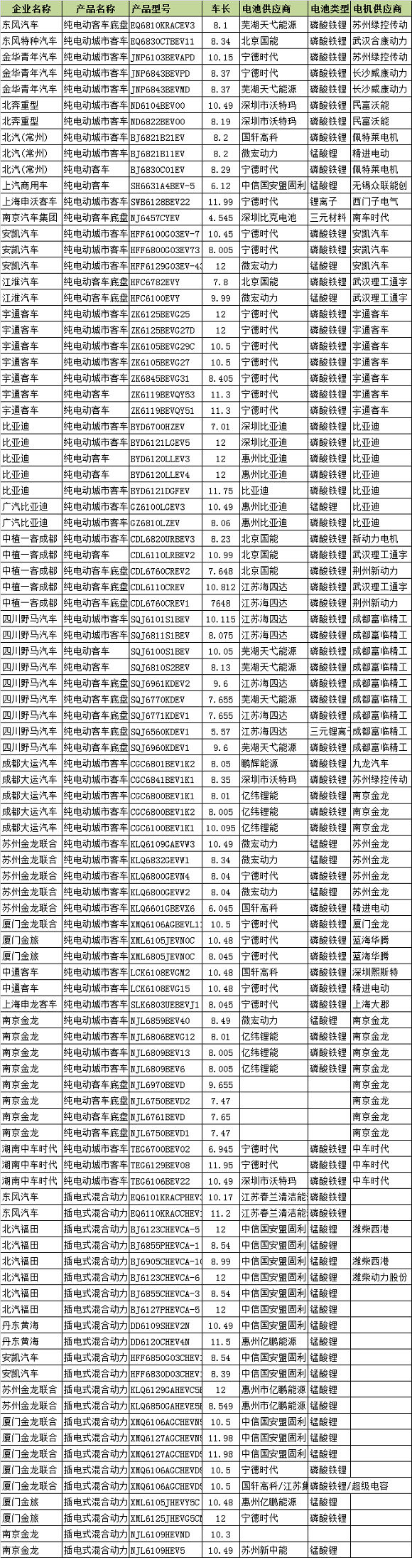 其中,在所有新能源客车中,共含有纯电动客车及底盘106款(含有33款改装车型),插电式混合动力客车及底盘有39款(含改装车型16款)。