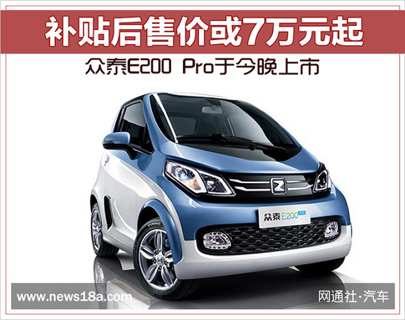 众泰E200 Pro于今晚上市 补贴后售价或7万元起