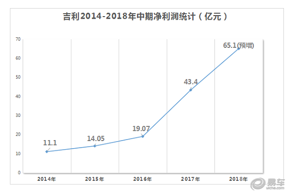 近日,吉利汽车控股有限公司发布2018年上半年正面盈利预告,截至6月30日集团净利润同比增长约50%,去年上半年吉利汽车控股集团净利润为43.4亿元人民币,也就意味着今年上半年吉利的净利润将达到65.1亿元人民币。