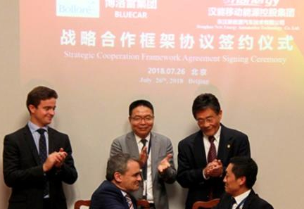 7月26日,汉能移动能源控股集团有限公司下属东汉新能源汽车技术有限公司与法国博洛雷集团(BOLLORE