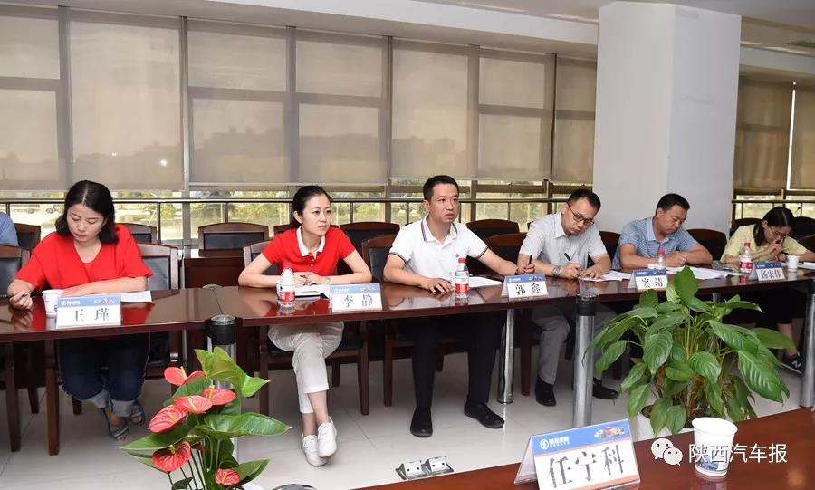 西安市文明办郭鑫副主任一行在高陵区宣传部副部长、文明办负责人李静陪同下到陕汽调研。陕汽控股党委常委王晓娟以及集团管理部部长王琳琳、人力资源部部长张金山、党委组织部部长颜峰、党委宣传部部长任宁科、审计部(纪检监察室)部长刘晓荣、安技环保部部长杨深旺、集团办公室(党委办公室)副主任梁建、工会副主席李益年、法律事务部副部长孙庆东、技术管理部科技管理部部长刘大鹏等与郭鑫一行在管理中心第二会议室进行座谈。
