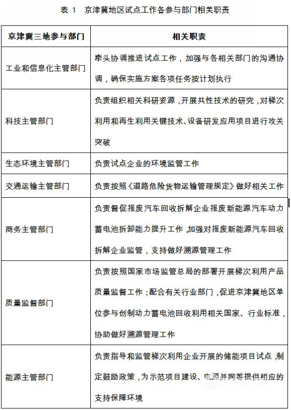 《京津冀地区新能源汽车动力蓄电池回收利用试点实施方