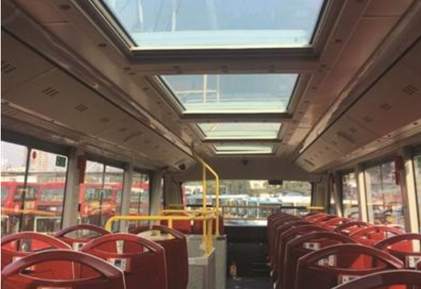 由于目前国内禁止敞篷双层巴士上路,所以他们特别设计了“全透明车顶”。作为一辆纯电动公交车,这种双层观光巴士续航里程可达到250公里以上。