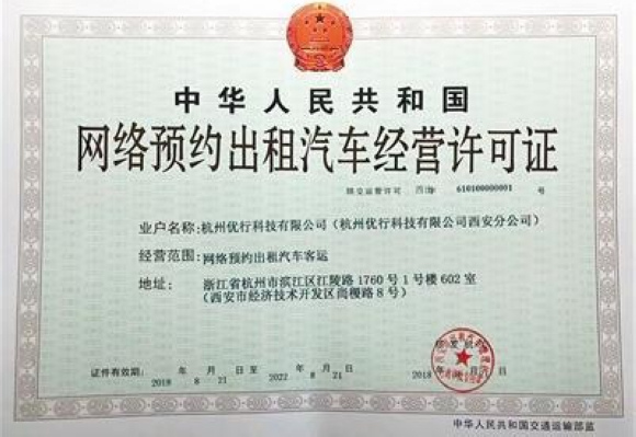 22日从西安市出租汽车管理处获悉,22日,杭州优行科技有限公司西安分公司领到《网络预约出租汽车经营许可证》。据悉,这是西安颁发出的首张网约车经营许可证。